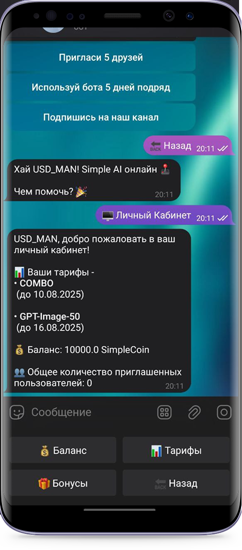 Неважно, новичок вы или опытный пользователь, наш бот сделает работу с ИИ проще и эффективнее. Предустановки, шаблоны и полезные инструкции помогут вам быстро разобраться.